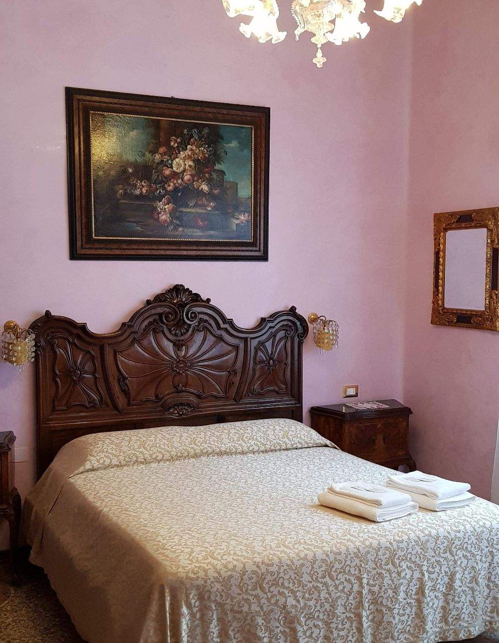 Gli interni presentano uno stile veneziano classico con mobili d'epoca, un lampadario in vetro di Murano e autentici pavimenti veneziani. Questa camera è perfetta per le coppie come comoda doppia.